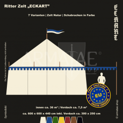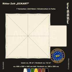 Das universelle Ritterzelt-Set Eckart, ideal fĂĽr Ritter & Landsknecht. Dank quadratischer Form nutzt man den Platz darin perfekt.