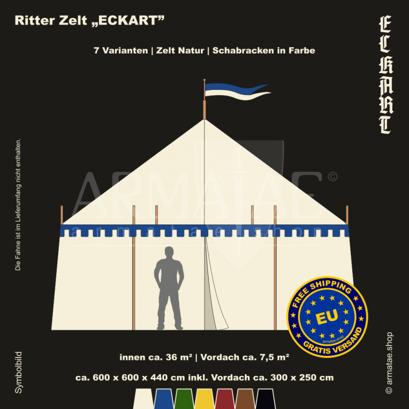 Die Steher bei allen Ritterzelten messen eine Durchmesser von 45 mm und die Masten einen Durchmesser von 55 mm. Habt ihr vor Schnitzereien oder Drechselarbeiten am Gestänge zu realisieren, ist das Original-Zeltgestänge dafür nicht geeignet. Falls dies der Fall sein sollte, bekommt ihr alle Zelte auch ohne Gestänge, natürlich zu einem niedrigeren Preis. So habt ihr die Möglichkeit das Gestänge passend selbst zu bauen und zu gestalten. Mit den Zeltplanen erhaltet ihr dann auch eine ausführliche Beschreibung, nach welcher ihr das Gestänge bauen könnt. Sendet uns einfach eine E-Mail und wir schicken euch das Angebot ohne Zeltgestänge zum gewünschten Zelt. Die Möglichkeit das Zeltgestänge selbst zu bauen habt ihr natürlich auch bei allen unseren Wikinger Zelten, auch hier kommt eine ausführliche Bauanleitung mit dem Zelt mit.
