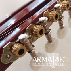 Die Mandoline wird aus langsam wachsenden Hölzern aus den Karpaten hergestellt, welche 5 bis 10 Jahre lagern, bevor sie zur Produktion verwendet werden. Dieses Qualitätsmerkmal gewährleistet höchste Formtreue und einen sehr schönen voluminösen Klang. Die Umsetzung des Instrumentes ist durchgehend hochwertig und die fein gängigen Mechaniken in Perlmut-Optik runden das Gesamtbild perfekt ab.