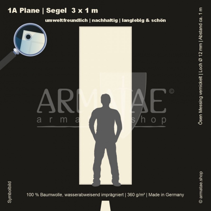 Schwere Sonnenschutz & Regenschutz Plane aus wasserabweisend imprägniertem 100 % Baumwollgewebe mit 360g/m². Für unzählige Einsatzbereiche, ob mobil oder für den Dauereinsatz fest montiert. Umlaufend gesäumt und mit rostfreien Ösen aus vernickeltem Messing mit einem Innendurchmesser von 12 mm im Abstand von 1 m von Hand gefertigt. 5 Jahre Garantie auf die äußerst robuste Verarbeitung.
