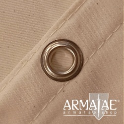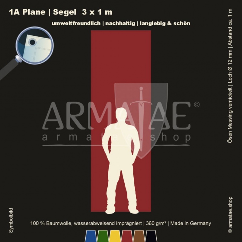 Schwere Sonnenschutz & Regenschutz Plane aus wasserabweisend imprägniertem 100 % Baumwollgewebe mit 360g/m². Für unzählige Einsatzbereiche, ob mobil oder für den Dauereinsatz fest montiert. Umlaufend gesäumt und mit rostfreien Ösen aus vernickeltem Messing mit einem Innendurchmesser von 12 mm im Abstand von 1 m von Hand gefertigt. 5 Jahre Garantie auf die äußerst robuste Verarbeitung.
