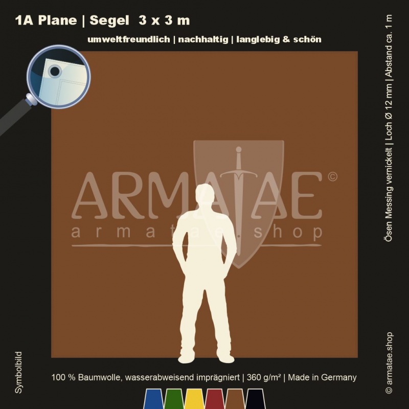 Schwere Sonnenschutz & Regenschutz Plane aus wasserabweisend imprägniertem 100 % Baumwollgewebe mit 360g/m². Für unzählige Einsatzbereiche, ob mobil oder für den Dauereinsatz fest montiert. Umlaufend gesäumt und mit rostfreien Ösen aus vernickeltem Messing mit einem Innendurchmesser von 12 mm im Abstand von 1 m von Hand gefertigt. 5 Jahre Garantie auf die äußerst robuste Verarbeitung.