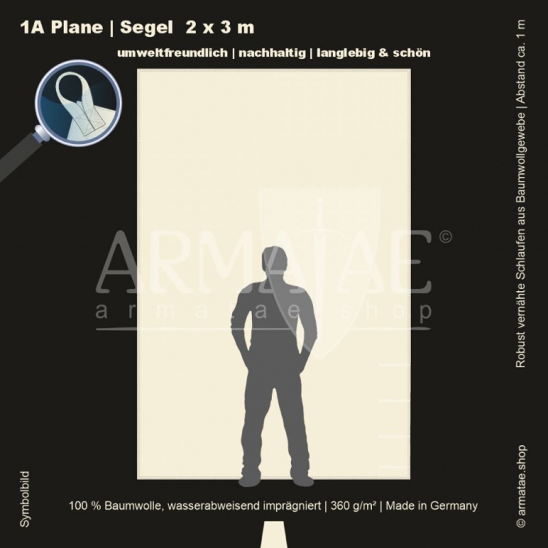 Schwere Sonnenschutz & Regenschutz Plane aus wasserabweisend imprägniertem 100 % Baumwollgewebe mit 360g/m². Für unzählige Einsatzbereiche, ob mobil oder für den Dauereinsatz fest montiert. Umlaufend gesäumt und mit Schlaufen aus Planenmaterial im Abstand von 1 m von Hand gefertigt. 5 Jahre Garantie auf die äußerst robuste Verarbeitung.