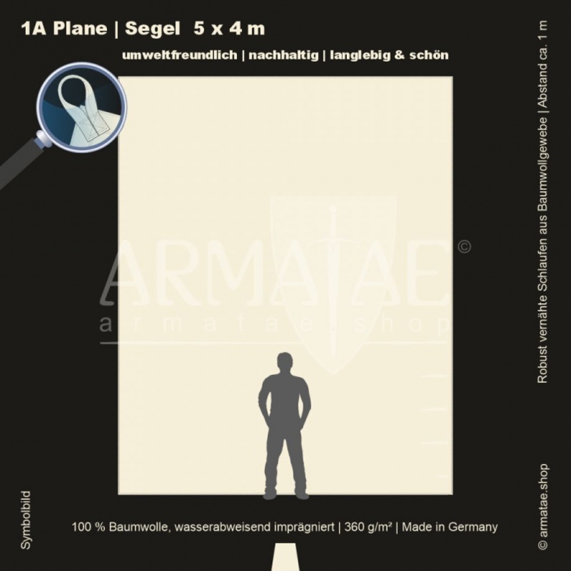 Schwere Sonnenschutz & Regenschutz Plane aus wasserabweisend imprägniertem 100 % Baumwollgewebe mit 360g/m². Für unzählige Einsatzbereiche, ob mobil oder für den Dauereinsatz fest montiert. Umlaufend gesäumt und mit Schlaufen aus Planenmaterial im Abstand von 1 m von Hand gefertigt. 5 Jahre Garantie auf die äußerst robuste Verarbeitung.