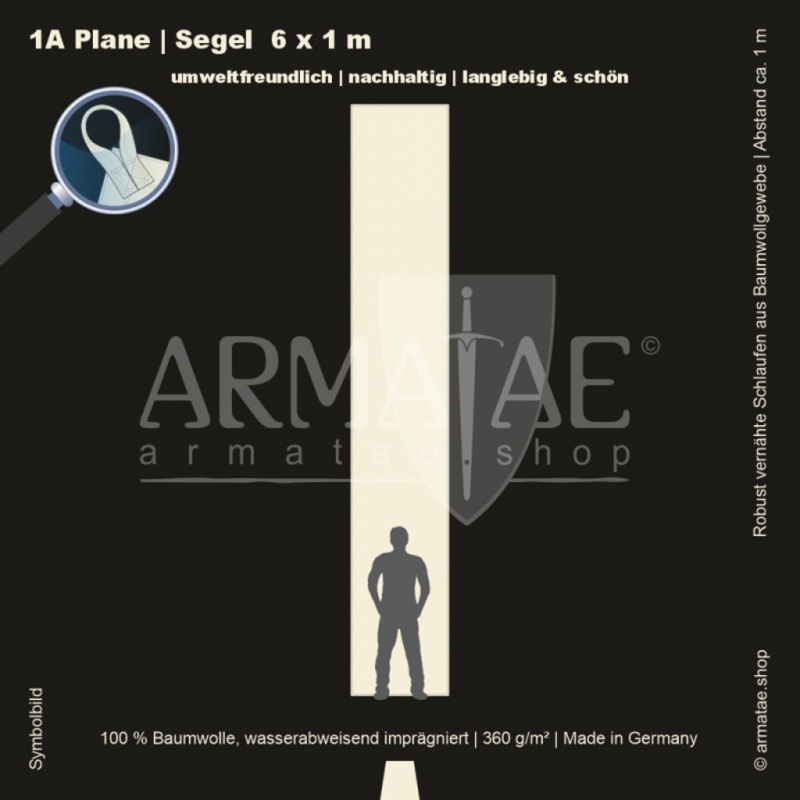 Schwere Sonnenschutz & Regenschutz Plane aus wasserabweisend imprägniertem 100 % Baumwollgewebe mit 360g/m². Für unzählige Einsatzbereiche, ob mobil oder für den Dauereinsatz fest montiert. Umlaufend gesäumt und mit Schlaufen aus Planenmaterial im Abstand von 1 m von Hand gefertigt. 5 Jahre Garantie auf die äußerst robuste Verarbeitung.