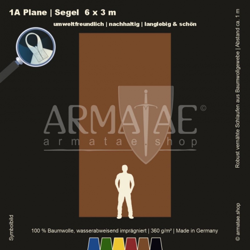Schwere Sonnenschutz & Regenschutz Plane aus wasserabweisend imprägniertem 100 % Baumwollgewebe mit 360g/m². Für unzählige Einsatzbereiche, ob mobil oder für den Dauereinsatz fest montiert. Umlaufend gesäumt und mit Schlaufen aus Planenmaterial im Abstand von 1 m von Hand gefertigt. 5 Jahre Garantie auf die äußerst robuste Verarbeitung.