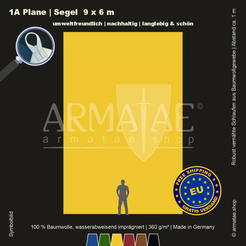 Schwere Sonnenschutz & Regenschutz Plane aus wasserabweisend imprägniertem 100 % Baumwollgewebe mit 360g/m². Für unzählige Einsatzbereiche, ob mobil oder für den Dauereinsatz fest montiert. Umlaufend gesäumt und mit Schlaufen aus Planenmaterial im Abstand von 1 m von Hand gefertigt. 5 Jahre Garantie auf die äußerst robuste Verarbeitung.