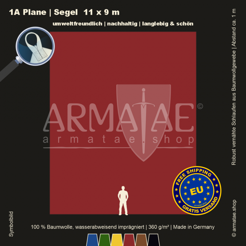 Schwere Sonnenschutz & Regenschutz Plane aus wasserabweisend imprägniertem 100 % Baumwollgewebe mit 360g/m². Für unzählige Einsatzbereiche, ob mobil oder für den Dauereinsatz fest montiert. Umlaufend gesäumt und mit Schlaufen aus Planenmaterial im Abstand von 1 m von Hand gefertigt. 5 Jahre Garantie auf die äußerst robuste Verarbeitung.