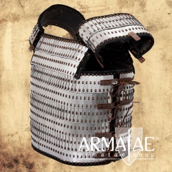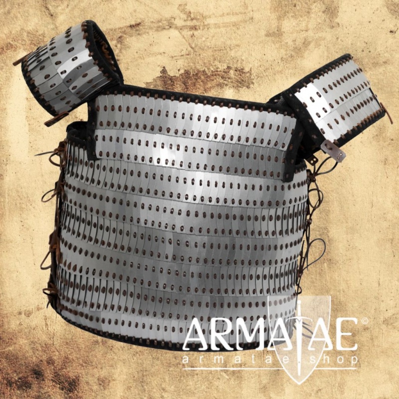 Der Panzer ist sehr gut einstellbar und langlebig. An den Schulterstücken sind je 3 Lederriemen angebracht, dort kann man sich weitere, separat erhältliche Schulter-/ Oberarmschützer in identischer Ausführung anbringen.