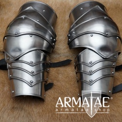 Diese mittelalterlich inspirierten Armschützer bestehen aus formschönen Einzelplatten, welche im Ellbogenbereich besonders viel Bewegungsfreiheit bieten.