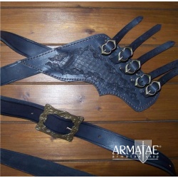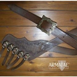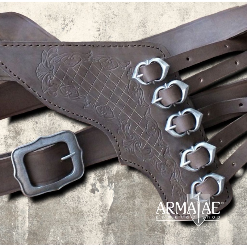 Ein sehr schöner Bandelier (Bandalier, Bandolier) nach französischem Vorbild aus robustem Rindsleder, aufwendig von Hand punziert. Die stilechten Schnallen komplettieren diese schöne Einheit.