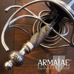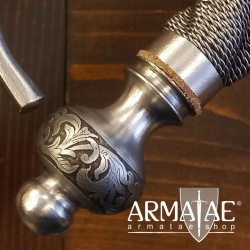 Das verschraubte System besteht aus einem floral geätztem Knauf und einem aus einer Vielzahl verschiedener Varianten wählbaren Griff, sowie dem kunstvoll gestaltetem Gefäß. Komplett ist das Angebot mit der bewährten Alotrium SM Sportklinge in 3-kantiger Ausführung, welche als Ersatz auch einzeln geordert werden kann.
