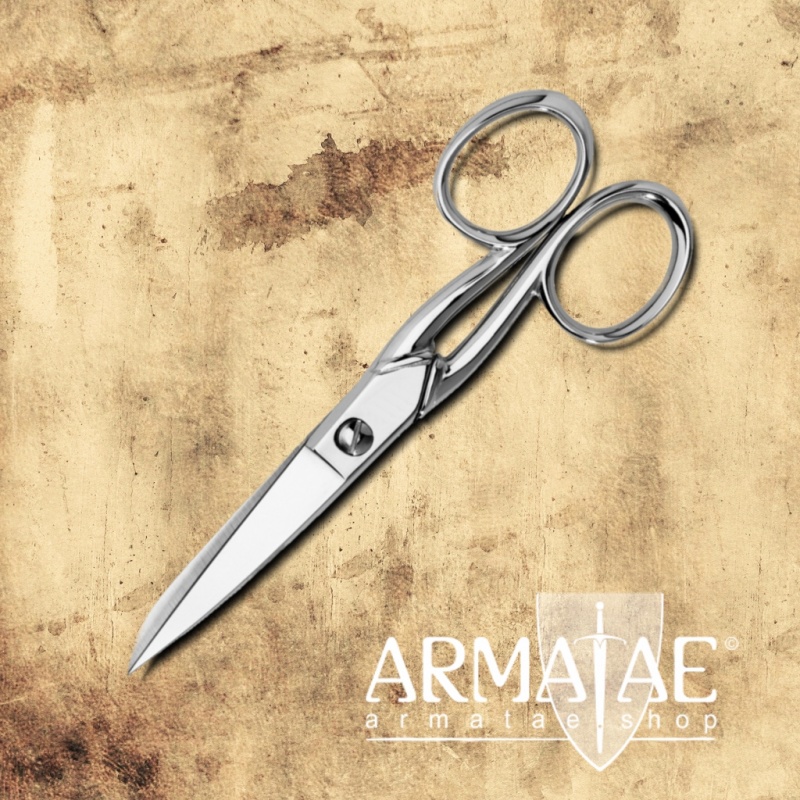 Aus Carbonstahl geschmiedete und vernickelte Schere für Haushalt, Büro, Schneider- und Bastelarbeiten.