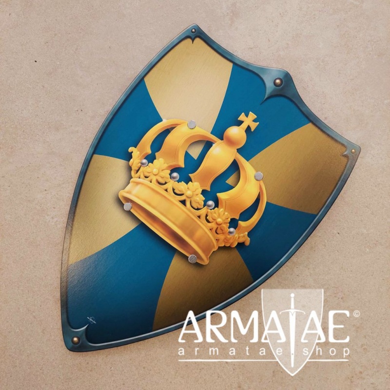 Der Schild besteht aus einer robusten Sperrholzplatte und besitzt auf der Rückseite zwei Haltegurte. Der 3D wirkende Druck in Antik Optik wird die Augen eines jeden kleinen Ritters zum Leuchten bringen.
