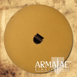 Der Schild zeigt die Wölfe Mánagarm & Sköll, Söhne des aus der nordischen Mythologie stammenden Fenriswolfes. Der Schild ist für Wikingerschilde typisch, mit Schildbuckel und dem dahinter zentral montierten Griff, welcher auch das Tragen einer Axt, verborgen hinter dem Schild mit derselben Hand ermöglicht. Der Schild ist aus Sperrholz gefertigt und mit Segeltuch bespannt. Der Schildbuckel ist mit dabei und muss selbst montiert werden, passende Schrauben liegen bei.