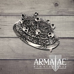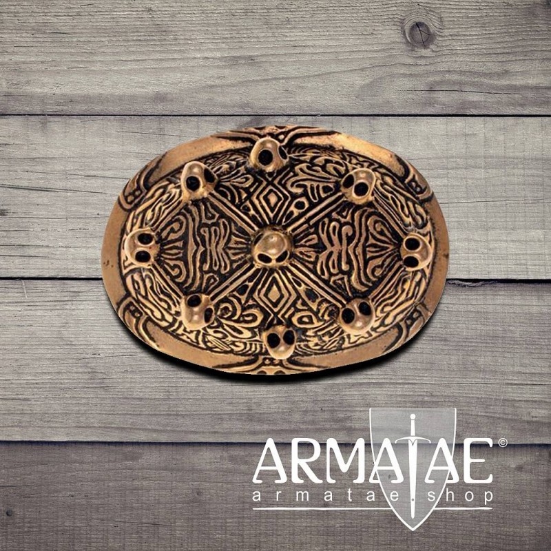 Diese stattliche Wikinger Buckelfibel ist ein Replik nach einem Fund in Saltvik auf Åland aus dem 9. Jh. Solche Fibeln werden auch als Schildkrötenfibel, Ovalfibel, Buckelfibel oder Schalenfibel bezeichnet.