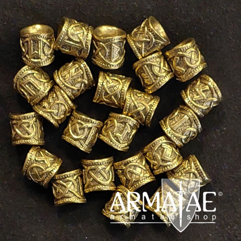 Ein 24-teiliges Set von Perlen für Armband, Halsband oder als Haar bzw. Bartperle, welches das komplette Elder Futhark "Runen Alphabet" zeigt.