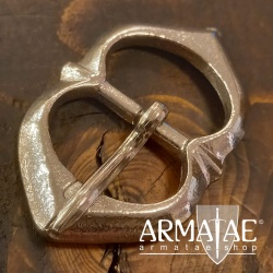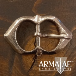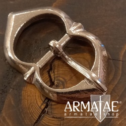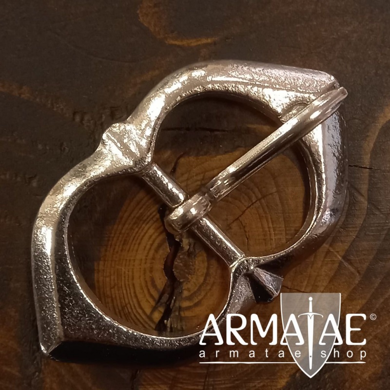 Authentische Schnalle nach einem Fund aus England datiert auf die Zeit 1350  - 1600 nach Christus. Solche Schnallen waren in ganz Europa anzufinden und wurden für Taschen, Schuhe, Zaumzeug, Riemen an Rüstungen etc. verwendet.