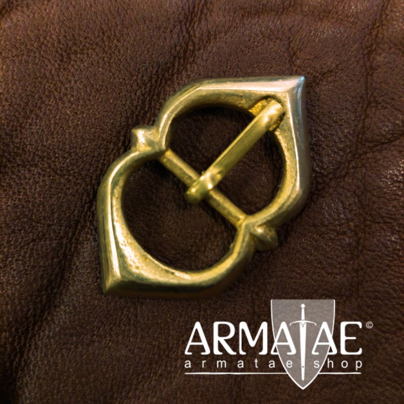 Diese authentische Replik einer mittelalterlichen Messingschnalle passt für Lederriemen mit einer Breite von max. 15 mm.
