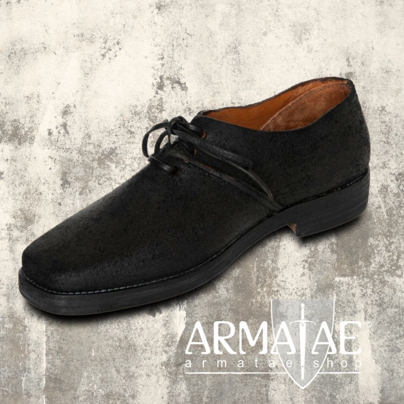 Bedingt durch das zeitlose Design passt dieses Schuhwerk auch für neuzeitliche und traditionelle Darstellungen. Die Sohle ist komplett mit massiven Nägeln besetzt.