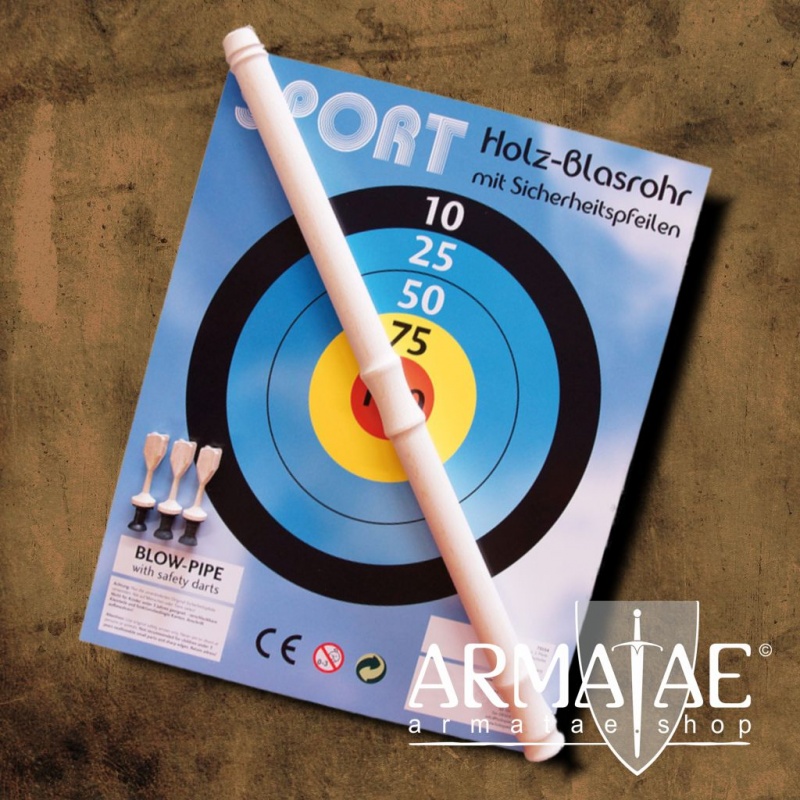 Dieses schön verarbeitete Blasrohr ganz aus Holz kommt im Set inklusive 3 Pfeile mit Saugnäpfen und passender Zielscheibe, so kann der Spaß gleich beginnen. Zusätzliche, passende Pfeile könnt ihr natürlich noch einzeln dazubestellen, hier der LINK.