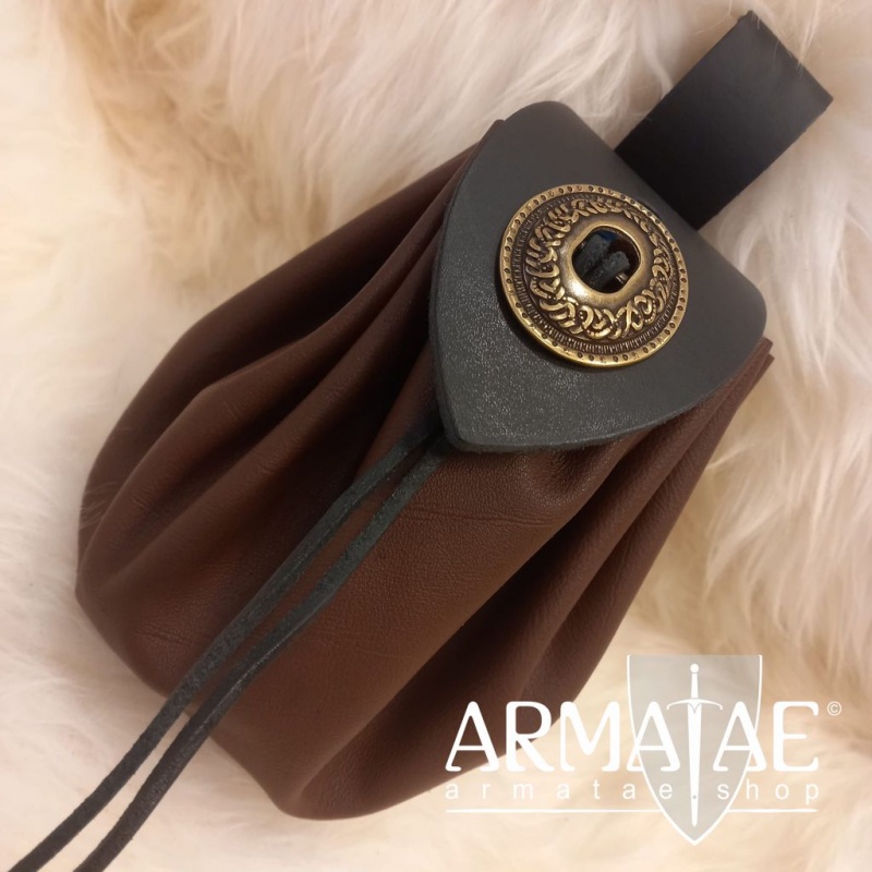 Der schöne Verschluss dieser Mittelalter-Geldkatze basiert auf historischen Gürteltaschen aus dem Spätmittelalter um 1400 nach Christus, bei denen diese Verschlusstechnik angewandt wurde.