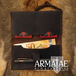 Die Tasche gibt es aus braunem oder schwarzem Leder und misst geschlossen ca. 170 x 95 mm. Lieferumfang: 1 StĂĽck