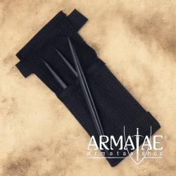Dieses 3er-Set Wurf-Spikes besteht aus geschwärztem und gehärtetem Kohlenstoffstahl und kommt mit einem Armband-Etui, welches sich mit Klettbändern am Unterarm festmachen lässt.