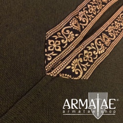 Sehr schöne mittelalterliche Tunika mit kurzen Ärmeln und Bordüren am Dekolleté und den Ärmeln. Mit den schönen, farblich abgestimmten Bordüren präsentiert sich diese Tunika sehr authentisch und gehört in jede mittelalterliche Garderobe.