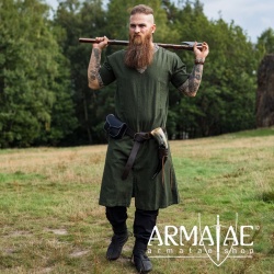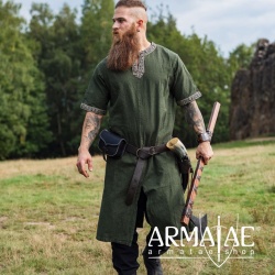 Bedingt durch die Gestaltung der Tunika ist diese gleichermaßen für hochmittelalterliche Darstellungen wie auch für Wikinger bestens geeignet, damit ist man bei jedem Mittelalterfest perfekt gewandet.
