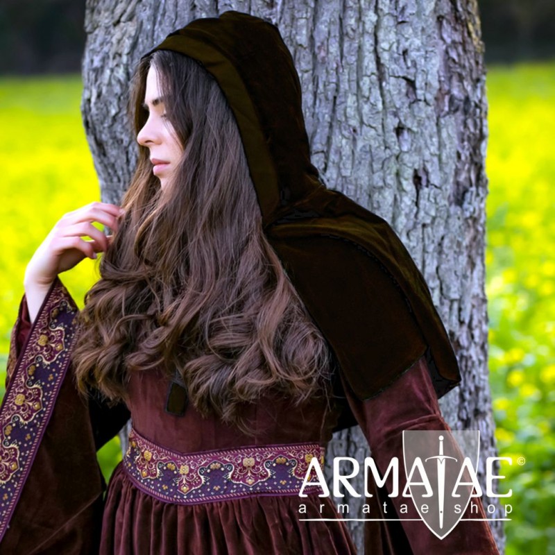 Edle Gugel aus echtem weichen Baumwollsamt, angenehm von vorne mit 2 Bändern zu schließen, mit Kapuze und großem Kragen. Eine mittelalterliche Gugel für die Dame hohen Standes, des Adels.