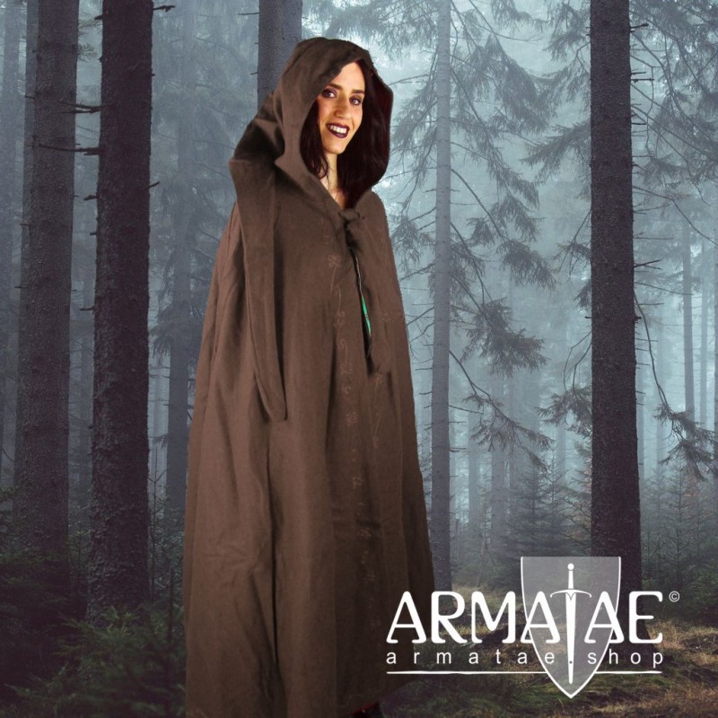 Ein Traum von einem Umhang. Dieser mittelalterliche Umhang aus schwerer Wolle mit großer langer Kapuze umhüllt dich wärmend und schützend mit sehr schöner Optik. Auch bei leichtem Regen legt der Umhang seine schützende Hand über dich, denn der dichte und schwere Woll-Mix, zum Großteil aus reiner Schurwolle, wirkt bedingt wasserabweisend und auch Schnee kann dadurch leicht abgeschüttelt werden.
