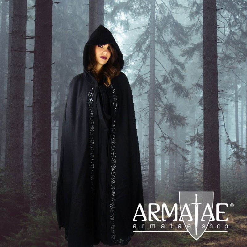 Ein wunderschöner Umhang für groß gewachsene Frauen. Dieser mittelalterliche Umhang aus schwerer Wolle mit großer langer Kapuze umhüllt dich wärmend und schützend mit sehr schöner Optik. Auch bei leichtem Regen legt der Umhang seine schützende Hand über dich, denn der dichte und schwere Woll-Mix, zum Großteil aus reiner Schurwolle, wirkt bedingt wasserabweisend und auch Schnee kann dadurch leicht abgeschüttelt werden.