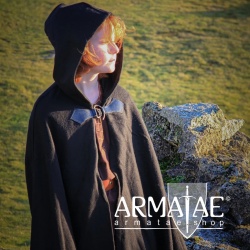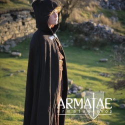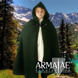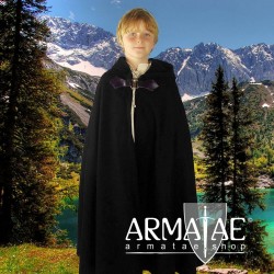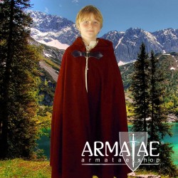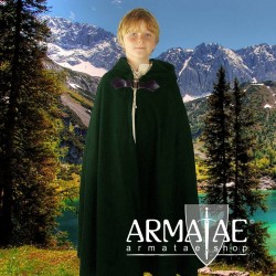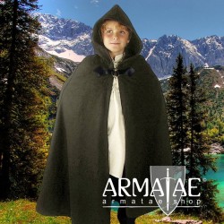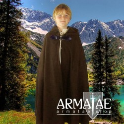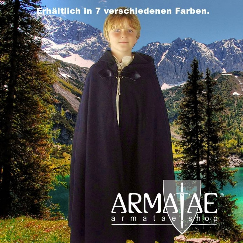 Umhang in exzellenter Qualität aus robustem Wollfilz mit Metall Drachenschließe an der Vorderseite und kurzer Kapuze. Der hochwertige Wollfilz wärmt und schützt. Bei leichtem Regen wirkt der Umhang  wasserabweisend. Der große Umhang kann auch als Decke verwendet werden und kann gleichermaßen von Mädchen und Knaben getragen werden.
