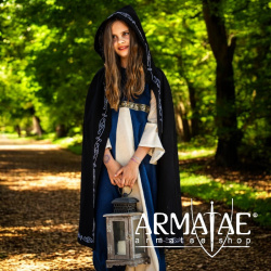 Sehr schöner, verträumter mittelalterlicher Umhang mit kurzer Kapuze und umlaufenden Handstickereien.