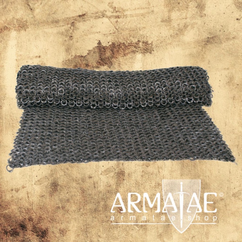 Diese authentischen Kettenröcke im Zusammenspiel mit Kettenarmschutz reduzieren das zu tragende Gewicht wie auch die Kosten erheblich, wenn man den Torso durch Plattenrüstung, Brigantine / Kürasse schützt.
