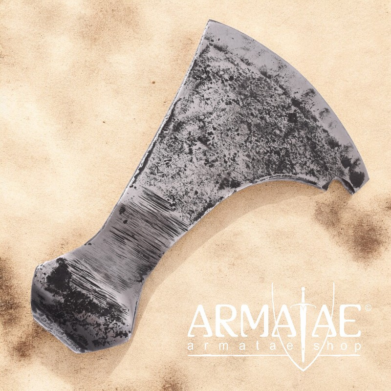 Diese typische Wikinger Bartaxt mit Helmdach für den Schaukampf, ein Qualitätsprodukt von Ulfberth ®, besitzt eine stumpfe Schneide und abgerundete Ecken, um die Verletzungsgefahr beim Schaukampf zu minimieren und um auch Waffen, Rüstung etc. vom Gegner bei Treffern nicht zu stark zu verletzen. Aus diesem Grund ist auch das Helmdach abgestumpft ausgeführt.