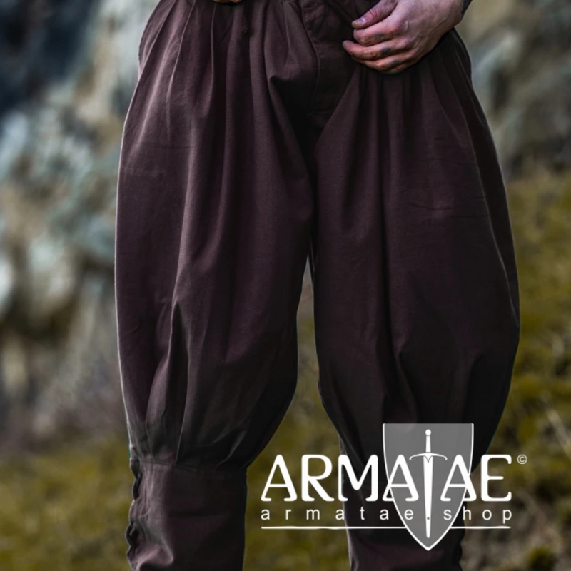 Die Hose verjüngt sich unterhalb des Knies, so stört keine Naht am Knie und die Bewegungsfreiheit ist besonders hoch. Eine sehr authentische Hose für Wikinger bzw. Rus Darstellungen und auch als Hose beim Schwertkampf oder Training eine äußerst bequeme Hose, die man am liebsten täglich tragen würde. Dazu passen auch Stiefel, so kann die Hose auch zu spätmittelalterlichen Charakteren genutzt werden, oder aber Wadenwickel mit z. B. Jorvik Schuhen für ein authentisches Wikinger-Outfit.
