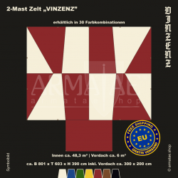 Das Mehrwert-2-Mast-Zelt-Set Vinzenz bekommst du in 30 Farbkombinationen.