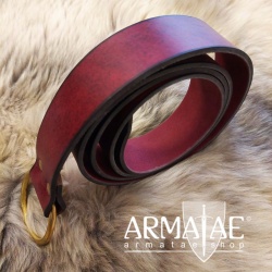 Ein schlichter aber sehr hochwertiger Ringgürtel aus bestem Rindsleder mit ca. 4 mm Stärke. Der doppelt vernietete Ring misst einen Durchmesser von 62 mm und besteht aus massivem Messing.