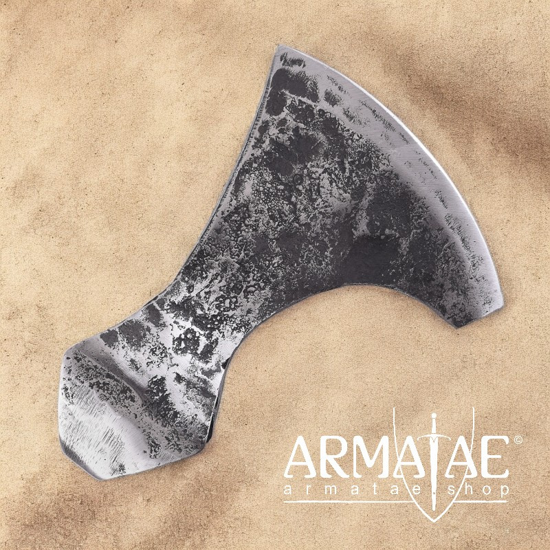 Von Hand aus einem Stück hochwertigem Kohlenstoffstahl rustikal geschmiedetes, frühmittelalterliches Wikinger Axtblatt mit sehr schöner rustikaler Optik, welche dem Beil mit den sichtbaren Hammerspuren ein sehr authentisches Aussehen verleiht.