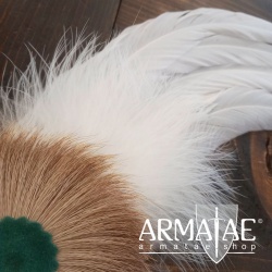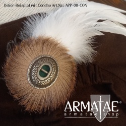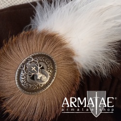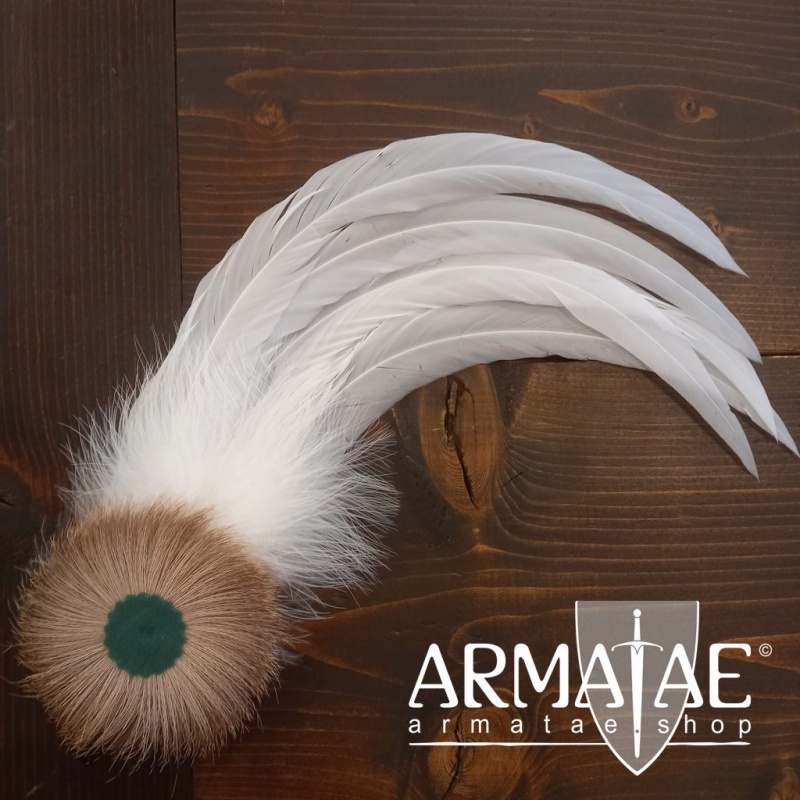Dieser ins Mittelalter zurückreichende und heute nach wie vor aktuelle Hutschmuck ziert nicht nur Hüte, sondern auch ein Barett aus Samt oder Wollfilz im Mittelalter Reenactment hervorragend.