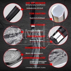 • Klingenmaterial: VG10 Damaszener Stahl, 67 Lagen