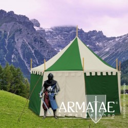 Zu jedem unserer Zelte bekommt ihr eine ausführliche Anleitung. Einmal aufgestellt werdet ihr feststellen, wie simpel und schnell diese mittelalterlichen Systeme es ermöglichen, Zelte, egal welcher Größe aufzustellen und abzubauen.