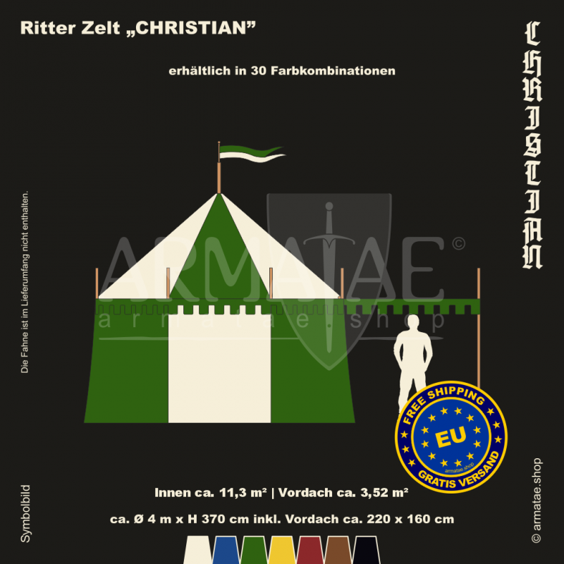 Das Mehrwert-Ritterzelt-Set Christian bekommst du in 30 Farbkombinationen.