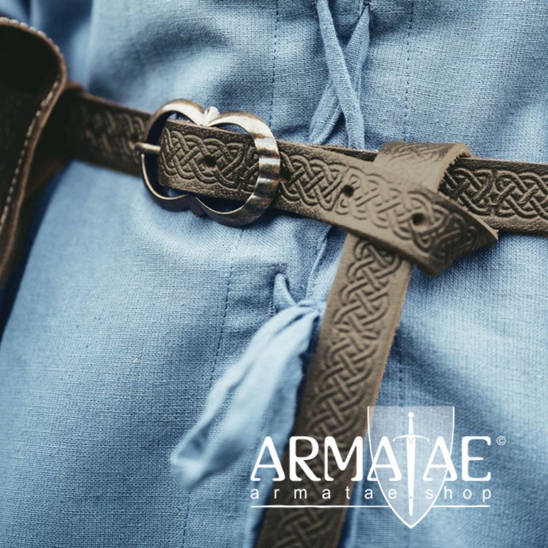 Ein aus hochwertigem Leder hergestellter Langgürtel, durchgehend mit Knotenmuster von Hand punziert.
