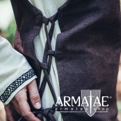 Typisches Wikinger Überkleid ohne Ärmel, mit Bändern zum Verschnüren an den Seiten. Ein schlichtes mittelalterliches Überkleid, gefertigt aus robuster Baumwolle in markanter Webung mit lieblicher Fasson.